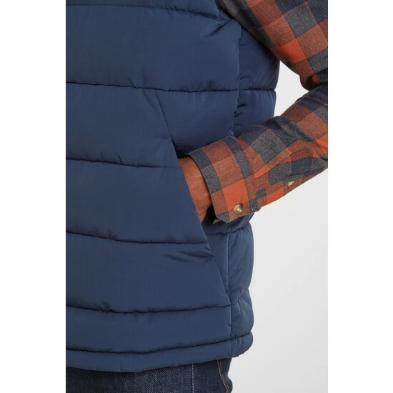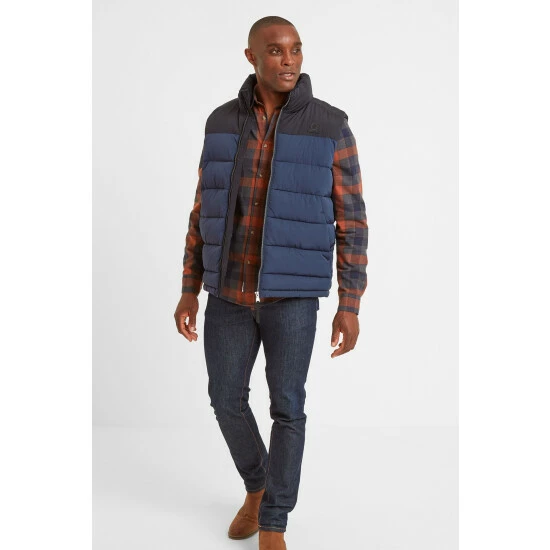 Designed by our team in West Yorkshire to keep the wind out and the heat locked in, our Murton men’s gilet keeps your body warm and your arms free for a full range of movement. This extra warm puffer is quilted with chunky, stitched baffles and thickly padded with a warm, insulated eco filling, so you’ll be helping the planet too. Murton comes in colours inspired by the rugged Yorkshire landscape and has a contrast colour neck and yoke, that matches the cuffs, to lift it out of the ordinary. There are two lower, angled zip up pockets perfect for storing your valuables or keeping your hands warm if you forget your gloves. The finishing touch is our signature rubber Tog 24 rose badge proudly displayed on the chest.