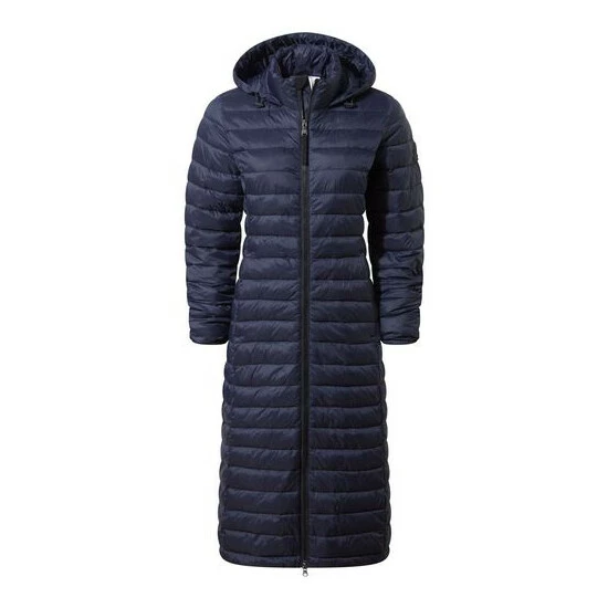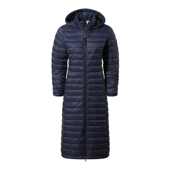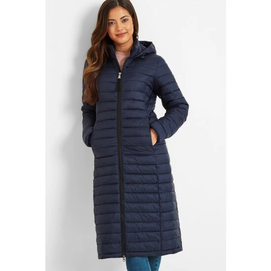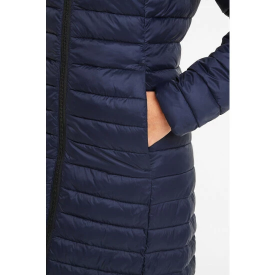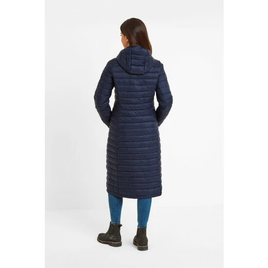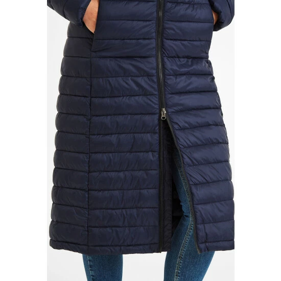 Wearing our Oldstead women’s extra-long quilted puffer jacket is like being wrapped up in a super warm and cosy, yet lightweight, duvet. This streamlined coat is quilted in a buttery soft, lightweight fabric with flattering narrow, stitched baffles and has a high-performance thermal filling made from recycled plastic bottles, giving warmth without adding bulk. It’s also easy to slip on and off thanks to a chunky two-way zip. Designed by our team in West Yorkshire in colours inspired by the moorland that surrounds us, Oldstead is wind resistant and has toggle adjusters at the hood and elasticated cuffs to keep the wind out and the heat locked in. There is also a supersoft padded inner collar that will keep your neck warm, even when the hood is down. Premium finishing touches include two good sized lower zip up pockets for your valuables and our signature embossed rubber Tog 24 Rose badge on the sleeve.