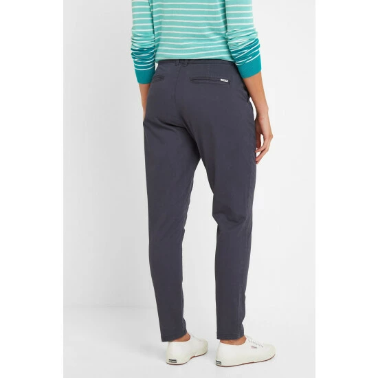 Designed in Yorkshire, these women’s chinos are the ultimate versatile summer trousers made in a soft lightweight stretch cotton, grown sustainably using less water, fewer chemicals and fairer wages for workers. Smarter than jeans they’re comfortable enough for a long walk through the countryside or along the cliffs and look right at home in the pub or wine bar at the end of the day. The design team gave them a slightly longer leg that can be worn down or rolled up, and sits well over a walking boot or trainers. Light stretch cotton, darted at the back gives these women s chinos a very flattering shape, and they hold securely at the waist with a hook and eye as well as a button. In keeping with the Truth Over Glory ethos, the TOG24 branding is kept subtle with a tiny logo on the button and a woven label on the back pocket.
