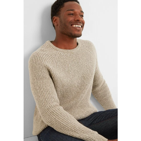 Our super soft men’s Toby jumper with its chunky knitted ribbed texture is perfect for chilly days. This casual sweater designed with an all-over marl fleck looks great paired with boots and jeans, for a relaxed everyday layer of warmth. Designed in Yorkshire in colours that evoke stormy seas and rugged cliff edges, this cosy jumper will keep you warm even in the coldest of weather. Our trademark attention to detail can be found in the thick ribbed cuffs, neckline and hem, and the small woven branded label on the side seam.