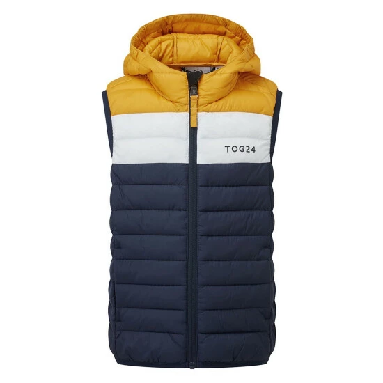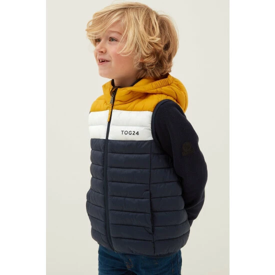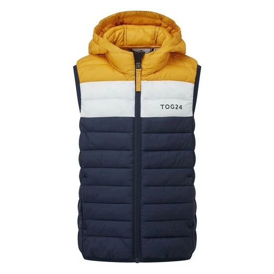 Perfect for in-between days when it’s too warm for a coat, but an extra layer is needed or to wear under a jacket in the winter, our Newhall kids gilet gives warmth without adding bulk. It’s quilted in a supersoft material that is buttery to the touch and has a warm, thermal filling made from recycled plastic bottles, so it’s better for the environment too. Designed in Yorkshire in colours inspired by the seaside town of Whitby Bay, this neat gilet has a full-length zip and soft elasticated binding around the armholes, hem and hood opening to keep out the wind. For safety, you’ll find a neat reflective print above the back hem that stands out against car lights for increased visibility at night. The finishing touch is a subtle, printed, TOG24 logo on the chest.