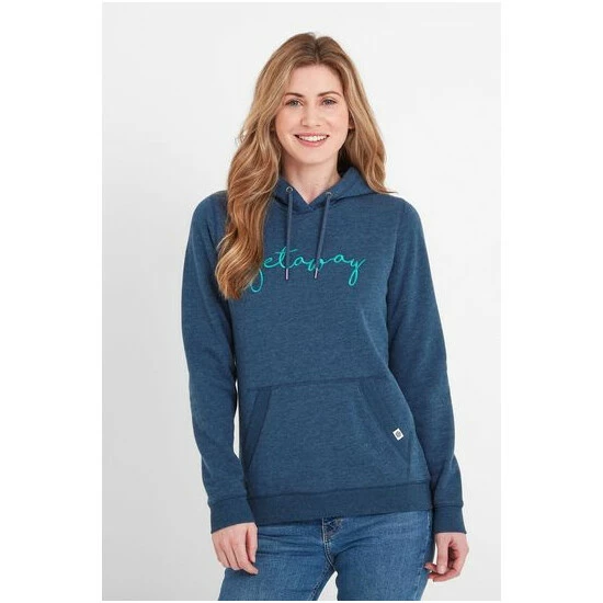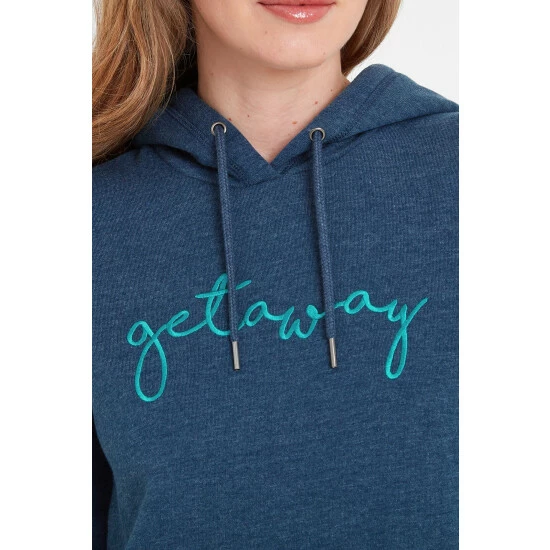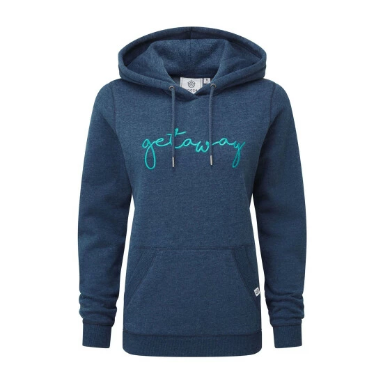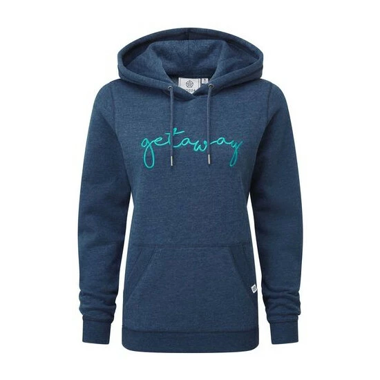 With the word ‘getaway’ embroidered across the front, TOG24’s Hertha Women’s Overhead Hoodie conjures up daydreams of summer breaks and beach outings. A soft and cosy extra layer when needed, Hertha feels fantastic and comes in a muted marl with a contrasting colour-pop slogan. Embroidered in satin thread that’s equally soft and smooth on the inside, Hertha comes in a sustainable cotton rich fabric that helps to reduce the environmental impact of clothing production. Knitted hoodie drawcords ensure a perfect fit when the hoodie is worn up, and ribbing to the cuffs, hem and pocket edges give a premium look. A roomy kangaroo pocket offers plenty of space for cold hands or valuables. Finishing it off is a small woven label on the pocket opening.