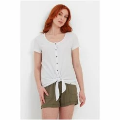 With its longer-line hem tie and feminine neckline, TOG24’s Millie cotton top is much more than ‘just a tee’. Supersoft and made from a sustainable cotton blend to help keep you cool, it has a deep, softly scooped neckline and small buttons down the front. Millie drapes beautifully over a skirt, shorts or lightweight trousers. It’s finished with the iconic Yorkshire rose woven label which is discreetly attached to the hem. Features supersoft short sleeve top. Cotton rich with sustainable cotton. Scooped neckline. Small buttons down the front. Front hem tie for a casual look. Small woven label on hem. A BRAND YOU CAN TRUST – TOG24 clothes are born out of the rugged Yorkshire moors where the company is based. This family firm has been making innovative, high performance, honestly-priced outdoor clothing since 1958. Their values of independence, integrity and quality are branded into the name – TOG stands for ‘Truth over Glory’. TWELVE MONTH AFTERCARE from TOG24 – Buy with confidence. If you have any issues with a TOG24 product caused by faulty materials or workmanship, TOG24 will repair or replace it free of charge. Simply return it within twelve months.