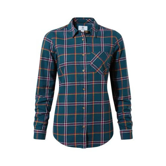 Perfect for a laid-back yet smart weekend look, our Myla women’s long sleeve checked shirt comes in a supersoft cotton blend that feels warm and cosy against the skin. This casual wardrobe must-have looks great with skinny jeans or leggings and has a relaxed, loose fit thanks to pleats at the back. The checks are yarn dyed, meaning they won’t run or fade in the wash, so you’ll be wearing this classic checked shirt for years to come. Myla is finished with a single patch pocket on the chest and, as a reminder of our West Yorkshire heritage, you’ll find discreet TOG24 branding on the buttons and a small woven label on the cuff.