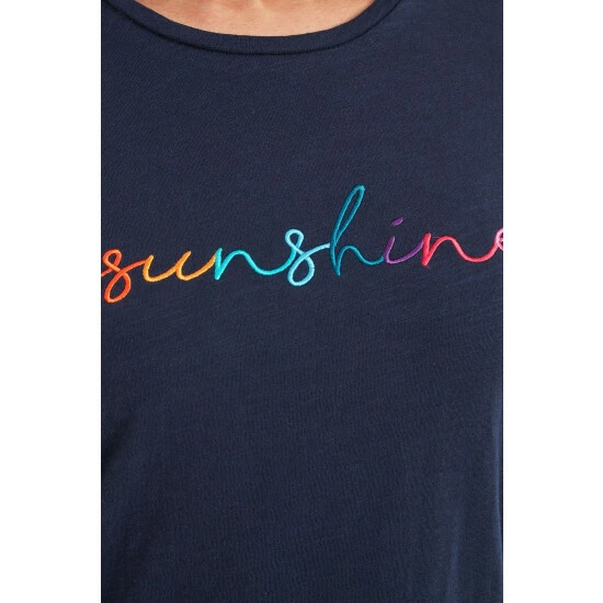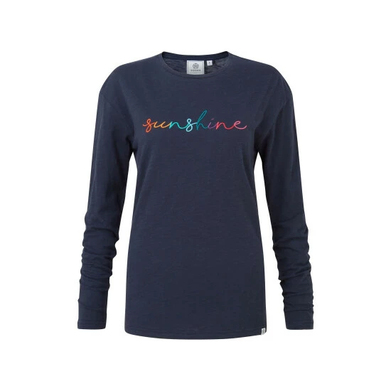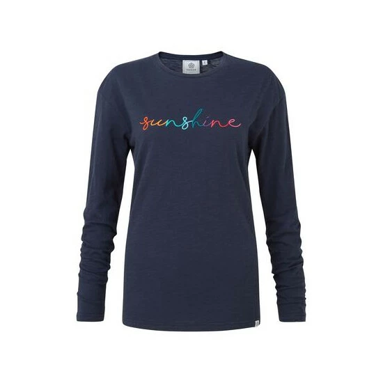 Bring some sunshine into your day with TOG24’s Shonda women’s long sleeved slogan tee which has ‘sunshine’ embroidered in rainbow-coloured script across the chest in soft, satin thread. Shonda is made in incredibly soft, 100% cotton fabric that has been sustainably produced to lessen the impact on the environment. With its wide, crew neck and relaxed fit, Shonda is easy to wear whether you’re exploring the Yorkshire Dales, walking the dog, or enjoying a day out by the sea. As a finishing touch, there’s a small woven label on the hem.