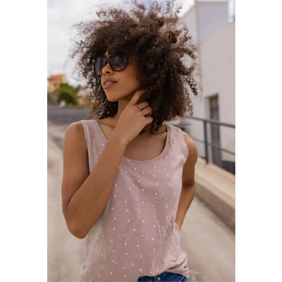 Polka dots are always a summer favourite and TOG24’s Healey women’s spot print vest top in 100% sustainable cotton is no exception. So versatile, it’s easy to dress up or down with accessories and looks just as good on its own or worn under a light wrap or V-neck sweater. With its wide, gently scooped neckline, light slub texture and relaxed fit, Healey is a warm weather essential – perfect whether you’re at the beach or out with friends. As a finishing touch, there’s subtle branding in the form of a small woven label on the hem.